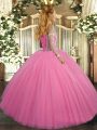 Beautiful Floor Length Lace Up 15th Birthday Dress Lilac for Military Ball and Sweet 16 and Quinceanera with Beading