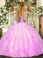 Beautiful Floor Length Lace Up Quinceanera Dresses Lavender for Sweet 16 and Quinceanera with Beading and Ruffles