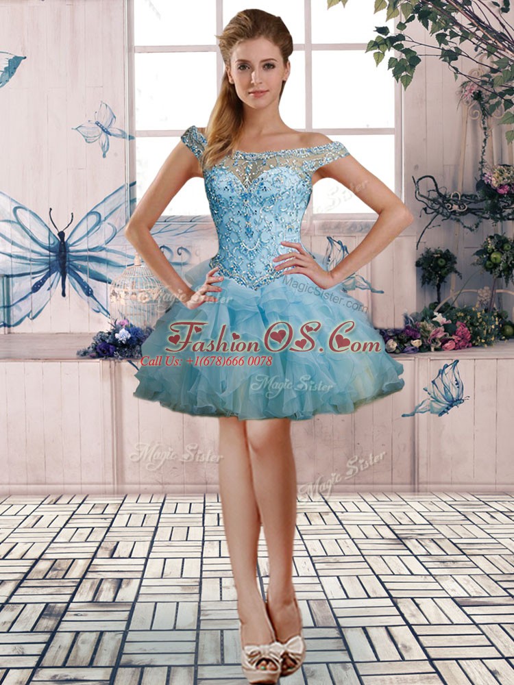 Beautiful Floor Length Light Blue Sweet 16 Dresses Organza Sleeveless Beading and Ruffles