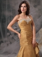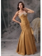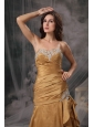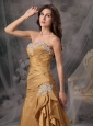 Beautiful Gold Mermaid / Trumpet Sweetheart Prom Dress Taffeta Beading Floor-length