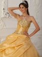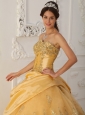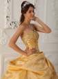 Beautiful Gold Quinceanera Dress Sweetheart Taffeta and Organza Beading A-Line / Princess