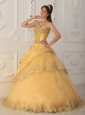 Home >  Quinceanera Dresses >  Cute Quinceanera Dresses > Beautiful Gold Quinceanera Dress Sweetheart Taffeta and Organza Beading A-Line / Princess