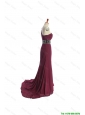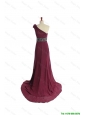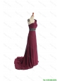 Beautiful Gorgeous One Shoulder Burgundy Prom Dress with Beading and Belt