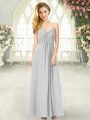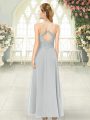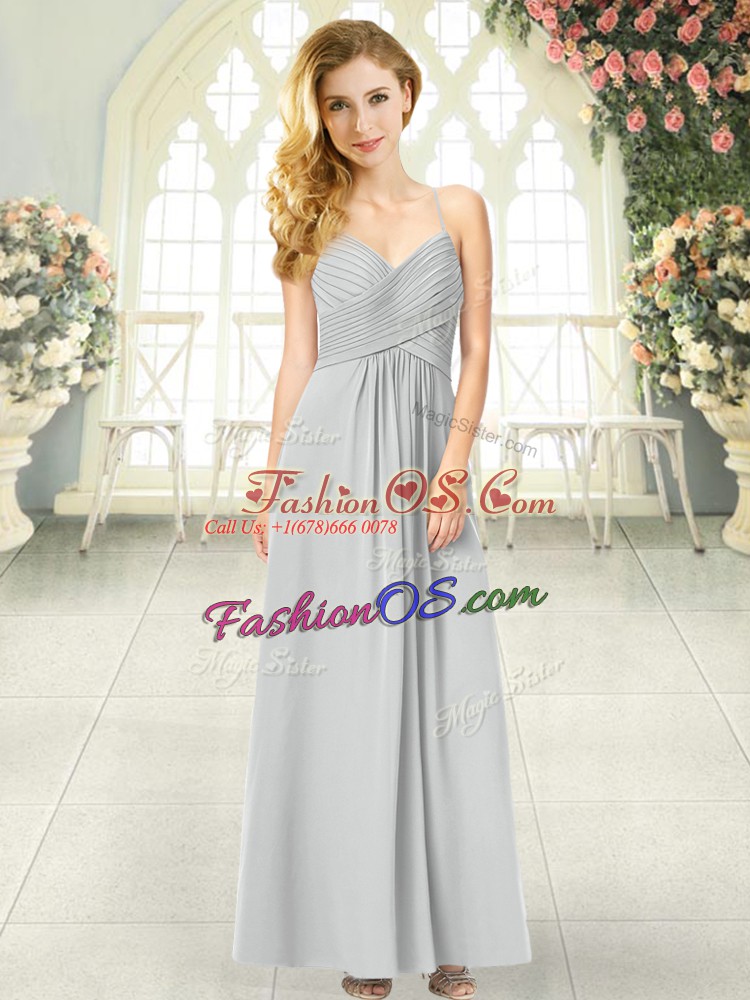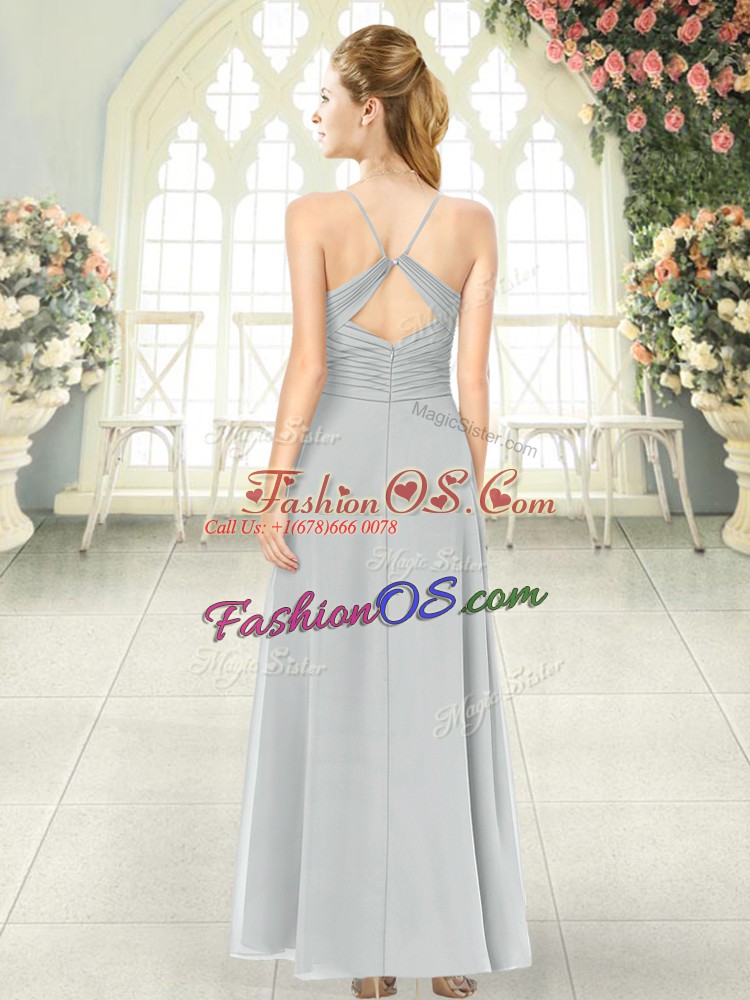 Beautiful Grey Sleeveless Ruching Ankle Length Prom Dress