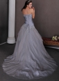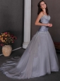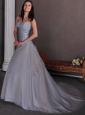 Beautiful Grey Wedding Dress A-line Sweetheart Court Train Taffeta and Tulle Appliques