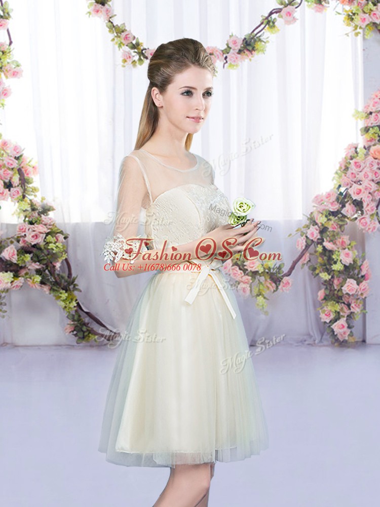 Beautiful Half Sleeves Lace and Bowknot Lace Up Dama Dress