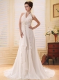 Beautiful Halter Appliques Wedding Dress With Brush Train For Custom Made