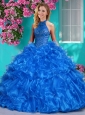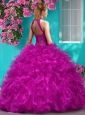 Beautiful Halter Top Beaded and Ruffled Quinceanera Dress in Royal Blue