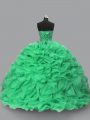Beautiful Halter Top Sleeveless Lace Up Sweet 16 Dresses Green Organza
