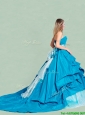 Home >  Quinceanera Dresses >  Popular Quinceanera Dresses > Beautiful Handcrafted Flowers and Ruffled Strapless Quinceanera Dress with Brush Train