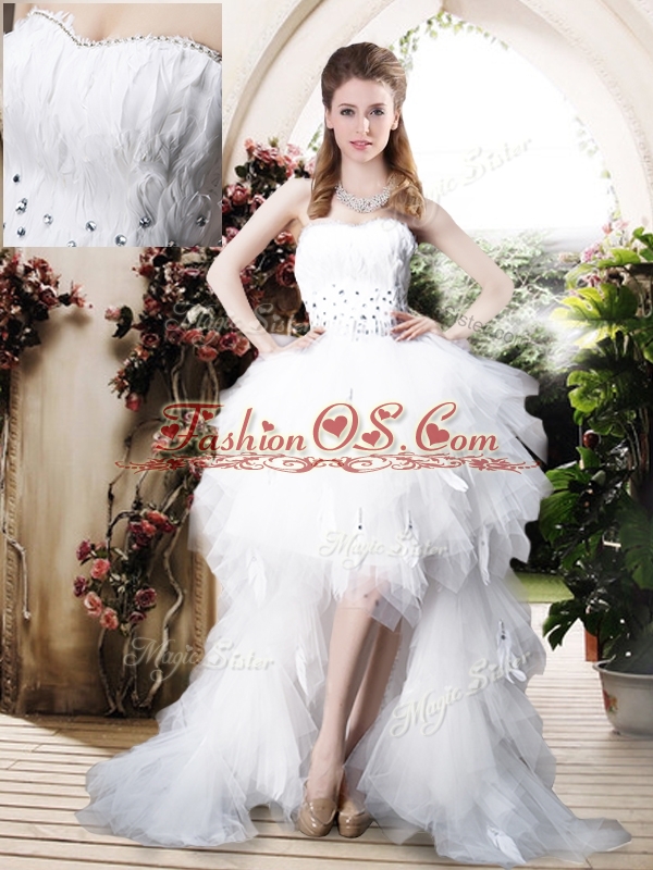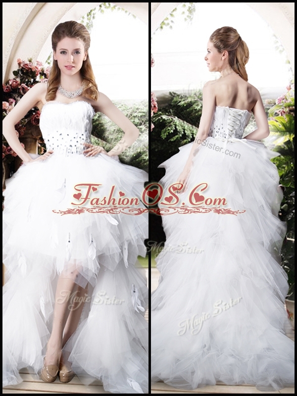 Beautiful High Low Sweetheart Wedding Dresses with Beading and Ruffles