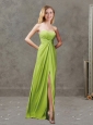 Home >  Prom Dresses >  Modest Prom Dresses > Beautiful High Slit and Ruched Chiffon Modest Prom Dress in Yellow Green