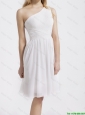 Beautiful Knee Length One Shoulder Prom Dresses in White 2015