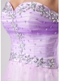 Sexy and elegant! This wonderful lavender short dress features a sweetheart neckline with the bustline, the waist line and the middle line decorated with beading appliques. The whole bodice is ruched and beaded. The a-line skirt is also embellished with scattered beading. Lace up back for great fit. A perfect dress for your party!
