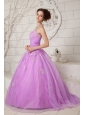 Beautiful Lavender Prom Dress A-line Sweetheart Tulle Appliques Floor-length
