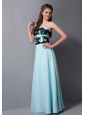 Beautiful Light Blue Chiffon Bridesmaid Dress with Black Lace