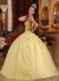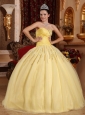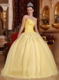 Home >  Quinceanera Dresses >  Perfect Quinceanera Dresses > Beautiful Light Yellow Quinceanera Dress Sweetheart Tulle Beading Ball Gown