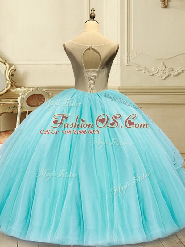 Beautiful Lilac Scoop Neckline Appliques Quinceanera Gown Sleeveless Lace Up