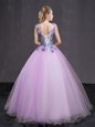Beautiful Lilac V-neck Lace Up Appliques and Belt Quinceanera Gown Sleeveless