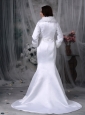 Beautiful Long Floor Length Winter Wedding Jacket Mermaid V-neck Satin