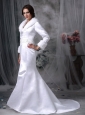 Home >  Wedding Dresses >  Latest Wedding Dresses > Beautiful Long Floor Length Winter Wedding Jacket Mermaid V-neck Satin