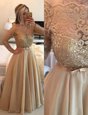 Beautiful Long Sleeves Chiffon Floor Length Zipper Evening Dress in Champagne for with Beading and Lace