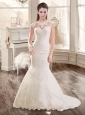 Home >  Wedding Dresses >  Romantic Wedding Dresses > Beautiful Mermaid Brush Train Lace Wedding Dresses with Cap Sleeves