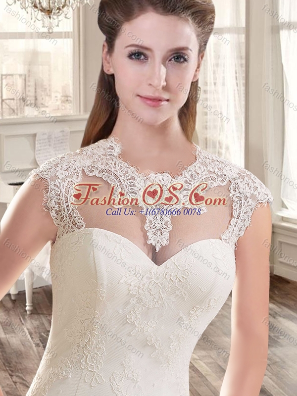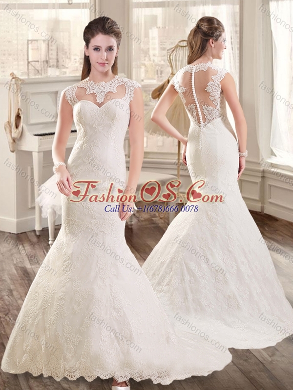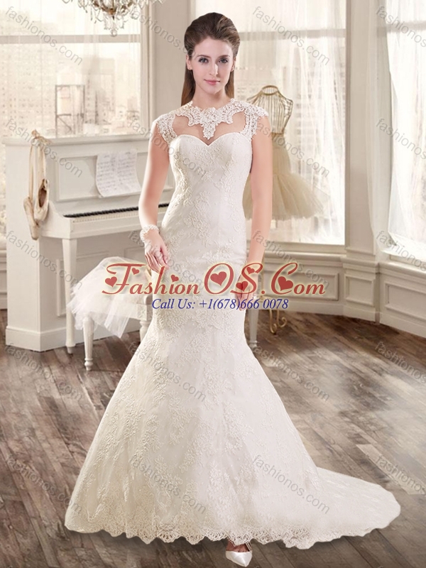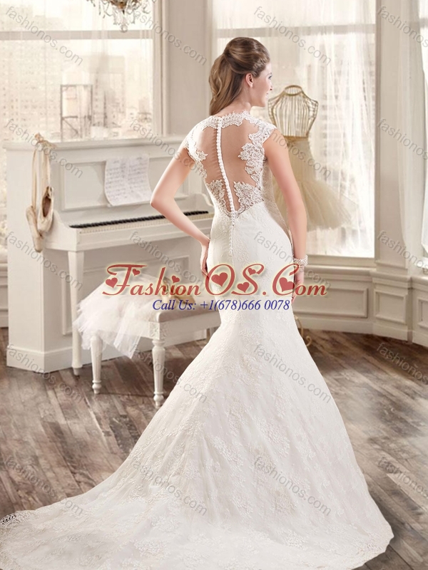 Beautiful Mermaid Brush Train Lace Wedding Dresses with Cap Sleeves