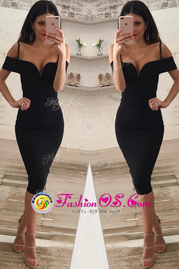 Home >  Special Occasion Dresses >  Cocktail Dresses > Beautiful Mermaid Cocktail Dresses Black Spaghetti Straps Elastic Woven Satin Sleeveless Knee Length Zipper