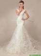 Beautiful Mermaid Deep V Neckline Wedding Dresses with Appilques and Ruching