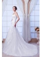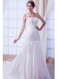 Beautiful Mermaid One Shoulder Chapel Train Organza Embroidery Wedding Dress
