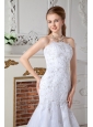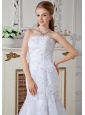 Beautiful Mermaid Strapless Wedding Dress Court Train Organza Appliques