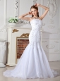 Home >  Wedding Dresses >  Elegant Wedding Dresses > Beautiful Mermaid Strapless Wedding Dress Court Train Organza Appliques