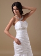A beautiful modest wedding dress complete with petal-shaped bust design. A under-bust beaded band accented the waistline and a soft rushed waist design flared a slim shape. This mermaid style has a delicate bodice with a lace-up back. If you're looking for a high-end wedding dress without the high-end price tag, this is definitely one you should consider.