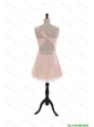 Beautiful Most Popular One Shoulder Beading Short Prom Dresses in Pink