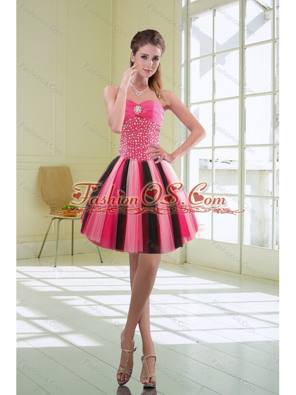 Beautiful Multi Color Beaded Sweetheart Prom Dresses with Ruffles