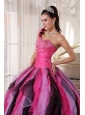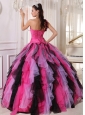 Home >  Quinceanera Dresses >  Pretty Quinceanera Dresses > Beautiful Multi-colored Quinceanera Dress One Shoulder Organza Beading and Ruffles Ball Gown