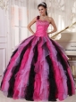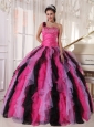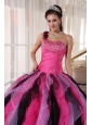 Beautiful Multi-colored Quinceanera Dress One Shoulder Organza Beading and Ruffles Ball Gown