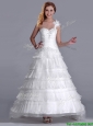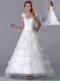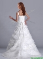 Beautiful One Shoulder Organza Brush Train Wedding Dress with Beading and Ruffled Layers