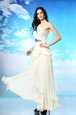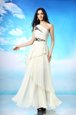 Beautiful One Shoulder Sleeveless Chiffon Ankle Length Side Zipper Formal Evening Gowns in White for with Appliques and Ruffled Layers