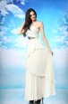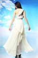 Home >  Evening Dresses > Beautiful One Shoulder Sleeveless Chiffon Ankle Length Side Zipper Formal Evening Gowns in White for with Appliques and Ruffled Layers