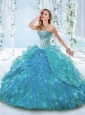 Beautiful Organza Blue Detachable Quinceanera Dress with Ruffles and Beading