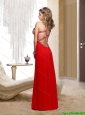 Beautiful  Perfect Empire Halter Top Red Prom Dress with Beading and Ruching