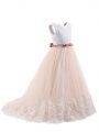 Beautiful Pink A-line Scoop Sleeveless Brush Train Zipper Lace Flower Girl Dresses
