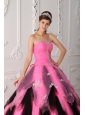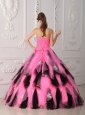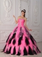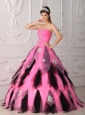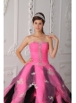 Beautiful Pink and Black  Quinceanera Dress Strapless Organza Appliques A-Line / Princess