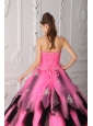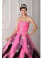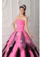 Beautiful Pink and Black Quinceanera Dress Strapless Organza Appliques A-Line / Princess