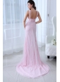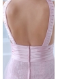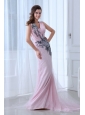Beautiful Pink Column V-neck Tulle and Taffeta Prom Dress with Appliques