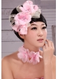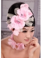 Beautiful Pink Taffeta and Tulle Pearl Headpiece For Party