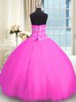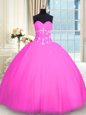 Beautiful Pink Vestidos de Quinceanera Military Ball and Sweet 16 and Quinceanera and For with Appliques Sweetheart Sleeveless Lace Up