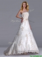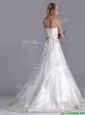Beautiful Princess Strapless Applique and Belted Wedding Dress with Brush Train